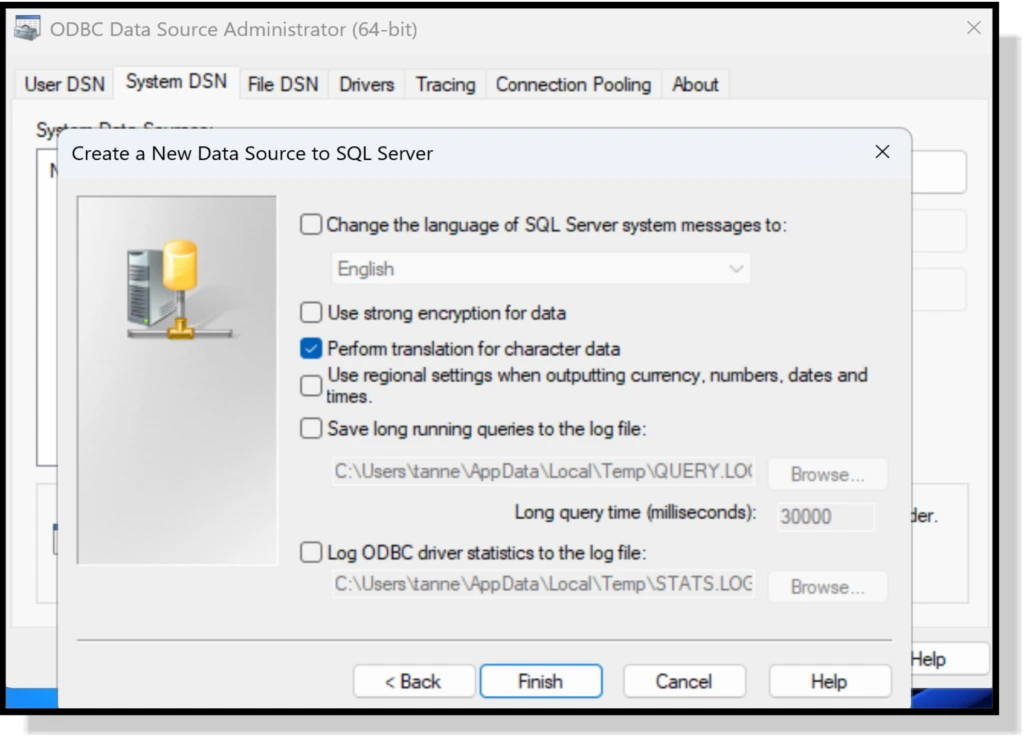 You will then need to repeat the exact process for the 64-bit connection as well. This will resolve issues where the client machine can’t log in to a local view or the administration client by creating a manual ODBC connection to the SQL servers named instance.